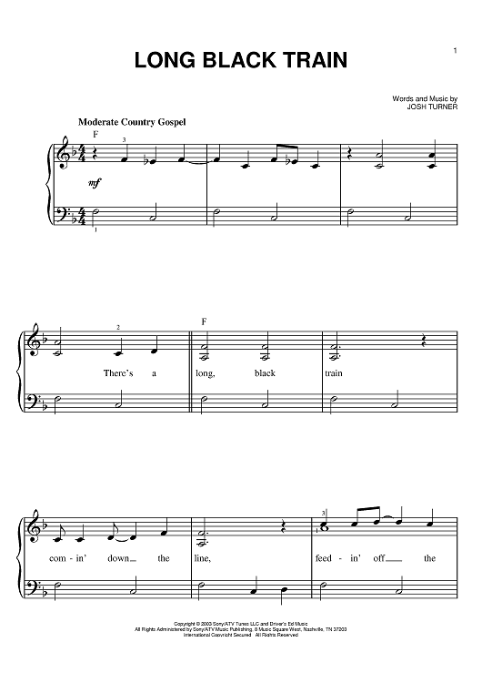 Digital Sheet Music for Long Black Train by Josh Turner scored for Easy Piano; id:379300