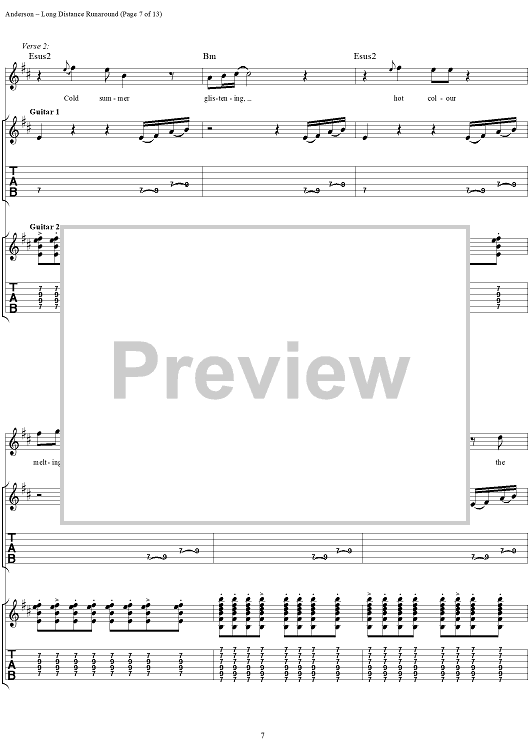 Digital Sheet Music for Long Distance Runaround by Yes, Jon Anderson scored for Guitar Tab/Vocal; id:112339