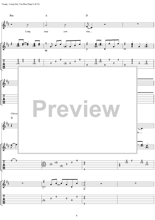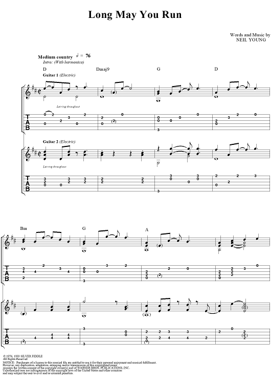 "Long May You Run" Sheet Music by Neil Young