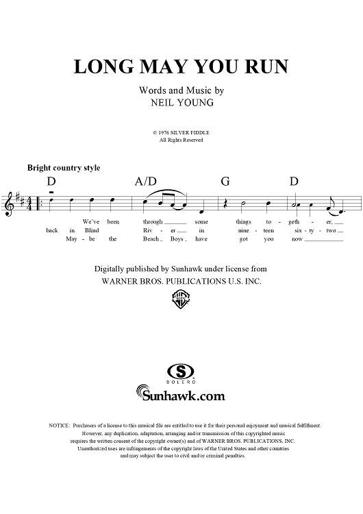 Digital Sheet Music for Long May You Run by Neil Young scored for Lead Sheet; id:119926