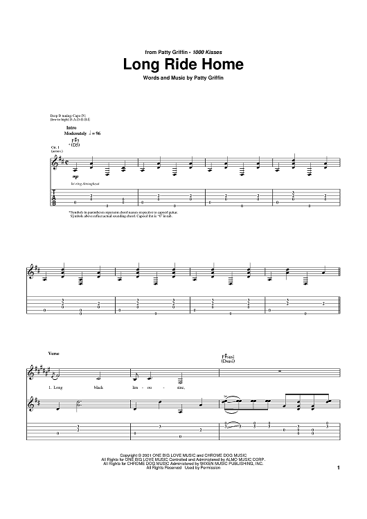 Digital Sheet Music for Long Ride Home by Patty Griffin scored for Guitar Tab; id:371647