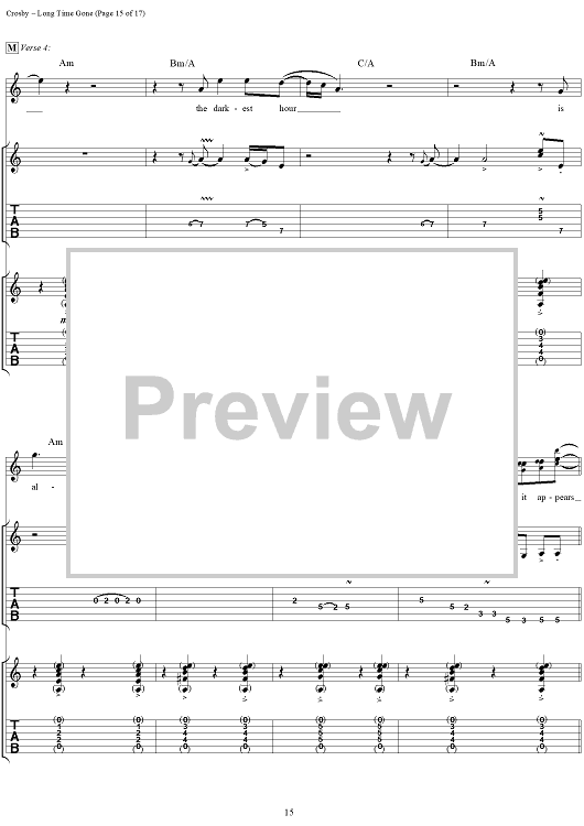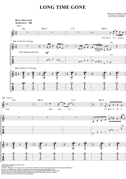 "Long Time Gone" Sheet Music by Crosby, Stills & Nash