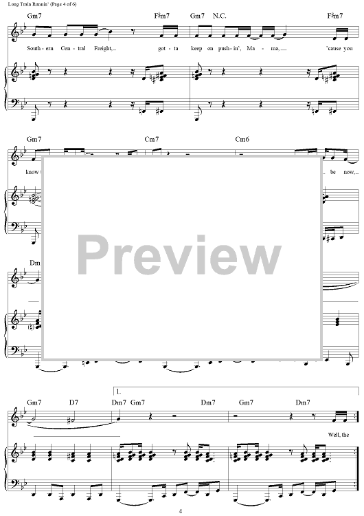 Digital Sheet Music for Long Train Runnin' by Tom Johnston, The Doobie Brothers scored for Piano/Vocal/Chords; id:120645