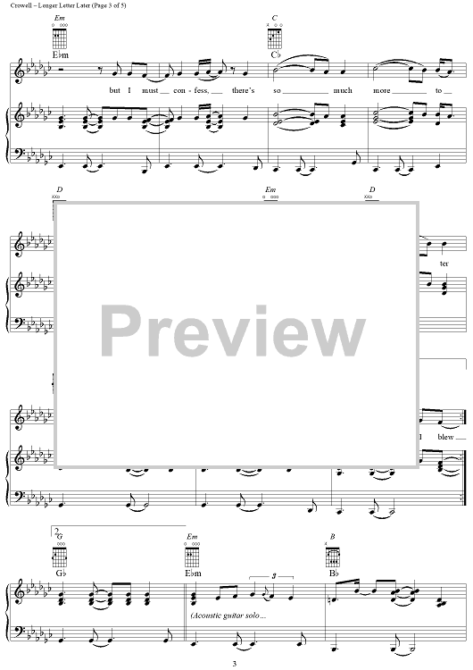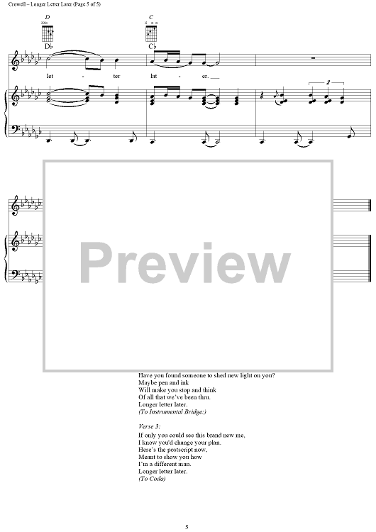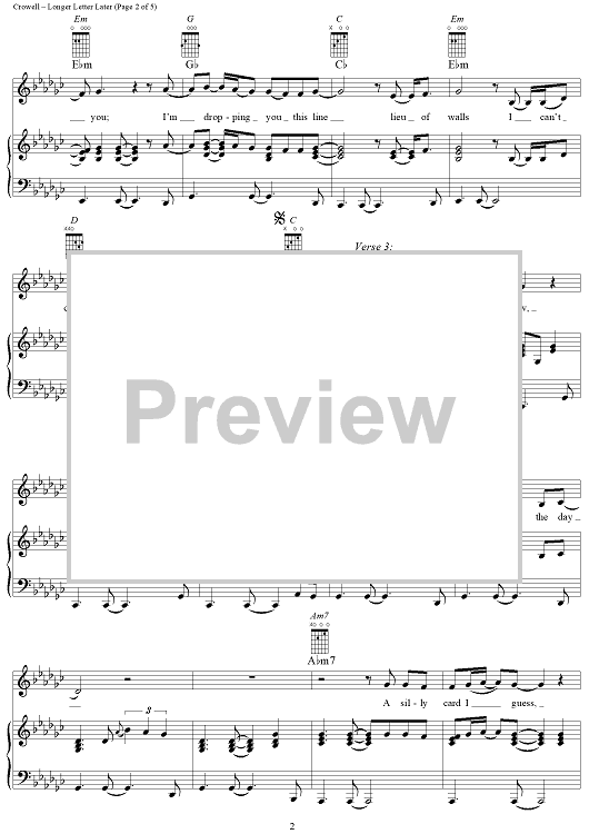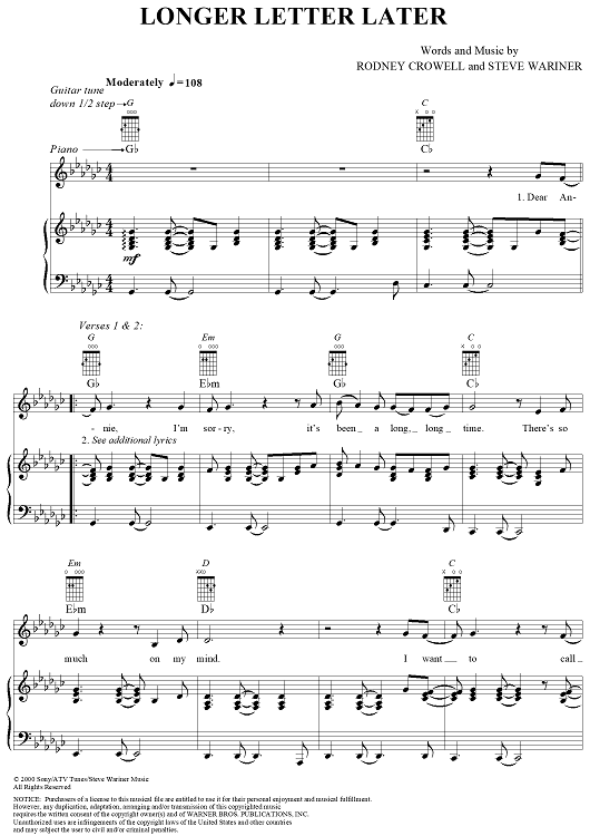 Digital Sheet Music for Longer Letter Later by Steve Wariner, Rodney Crowell scored for Piano/Vocal/Chords; id:286471