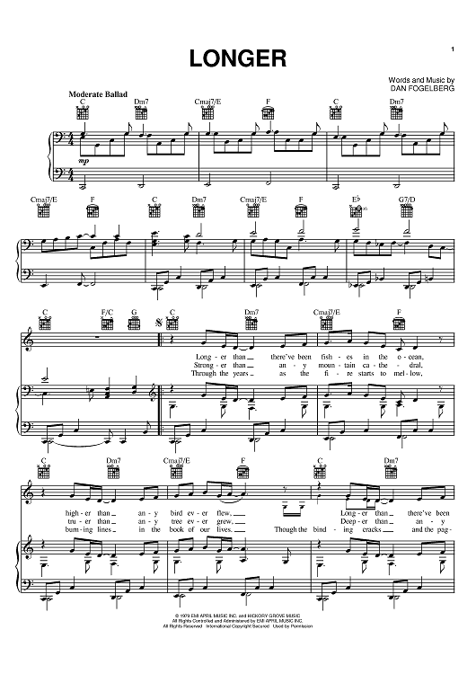 Digital Sheet Music for Longer by Dan Fogelberg scored for Piano/Vocal/Chords; id:373893