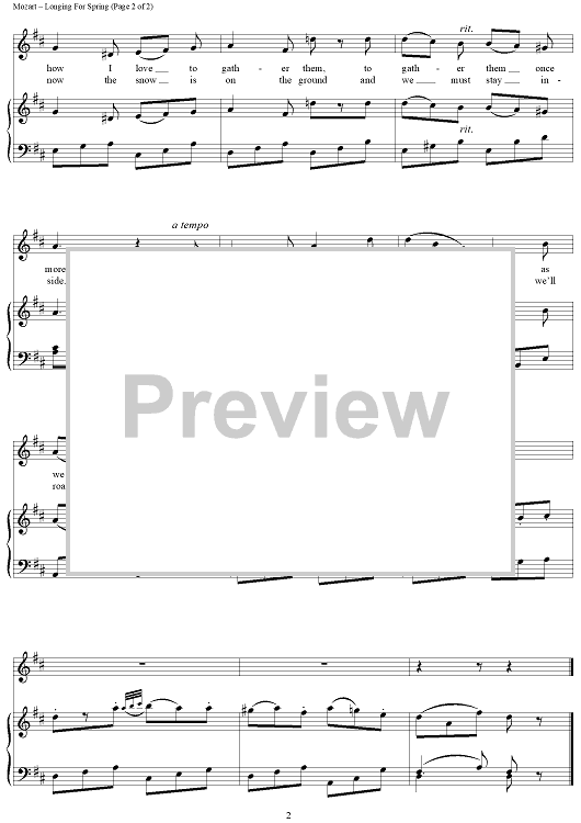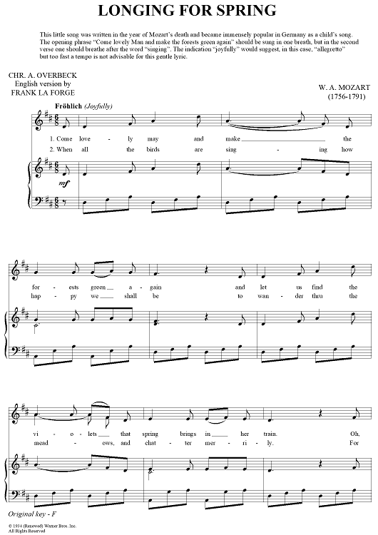 "Longing For Spring" Sheet Music by Wolfgang Amadeus Mozart