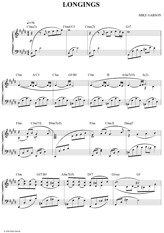 Digital Sheet Music for Longings by Mike Garson scored for Piano Solo; id:362990