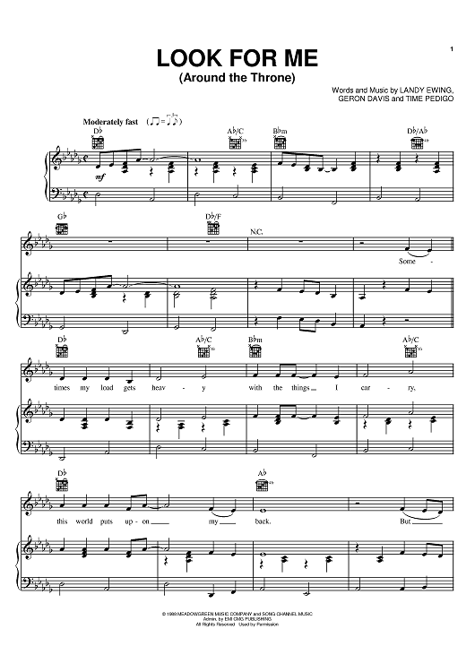 Digital Sheet Music for Look For Me (Around The Throne) by Geron Davis, Landy Ewing, The Hoppers, Tim Pedigo scored for Piano/Vocal/Chords; id:380401