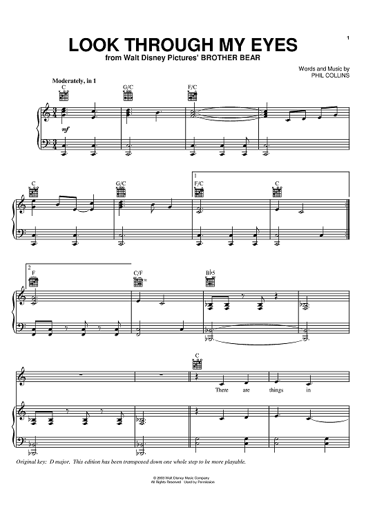 Digital Sheet Music for Look Through My Eyes by Phil Collins scored for Piano/Vocal/Chords; id:372701