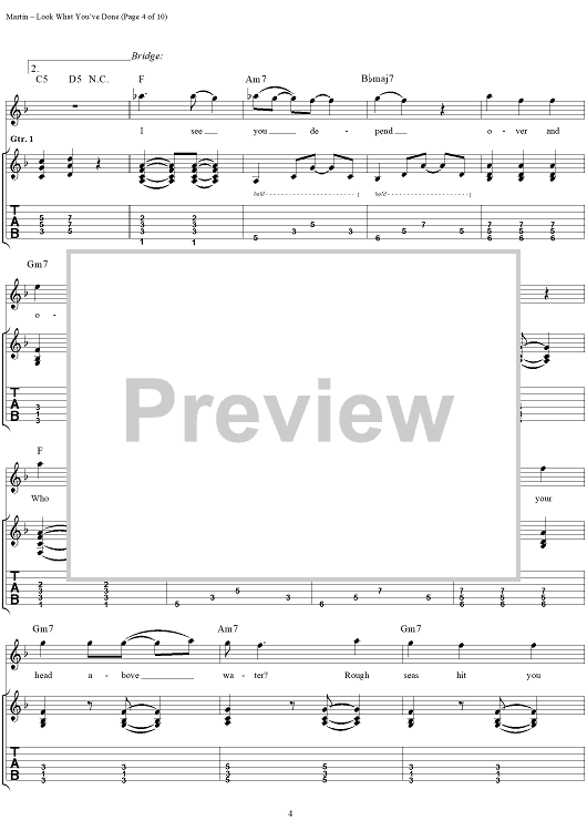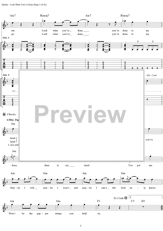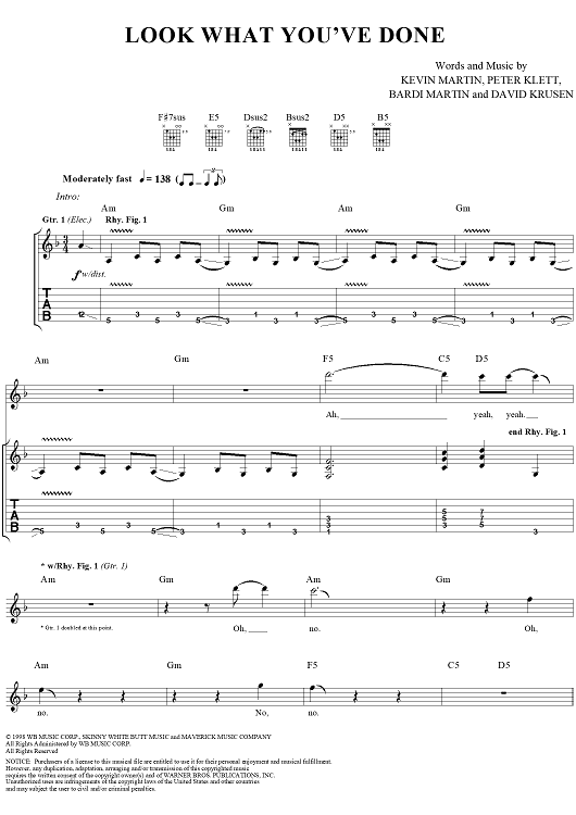 Digital Sheet Music for Look What You've Done by Kevin Martin, Bardi Martin, David Krusen, Peter Klett, Candlebox scored for Guitar Tab/Vocal; id:241141