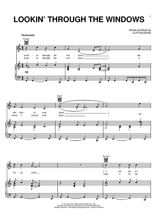 Digital Sheet Music for Lookin' Through The Windows by Clifton Davis, The Jackson 5 scored for Piano/Vocal/Chords; id:386747