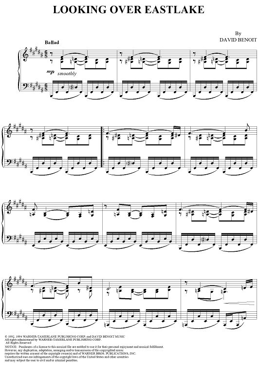 Digital Sheet Music for Looking over Eastlake by David Benoit scored for Piano Solo; id:275654