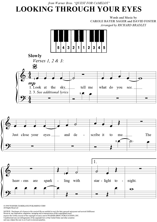 Digital Sheet Music for Looking Through Your Eyes by Carole Bayer Sager, LeAnn Rimes, Richard Bradley, David Foster scored for Five Finger Piano/Vocal; id:257249