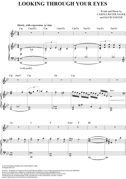 Digital Sheet Music for Looking Through Your Eyes by Carole Bayer Sager, Bryan White, The Corrs, David Foster scored for Piano/Vocal/Chords; id:362458