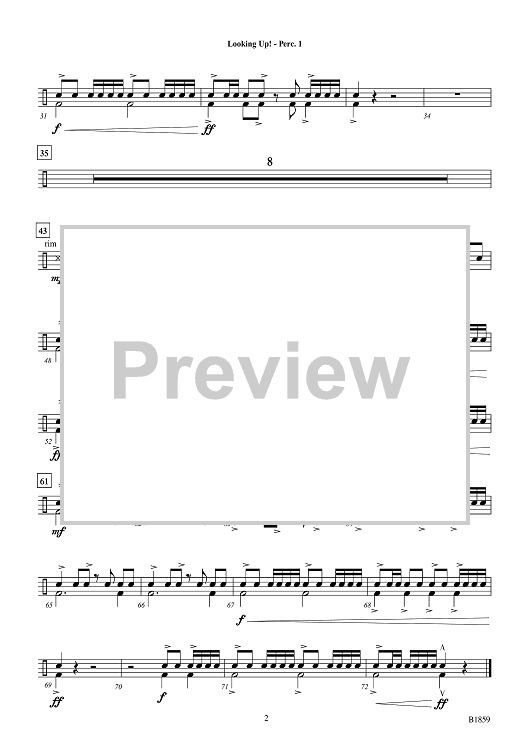 Digital Sheet Music for Looking Up! - Percussion 1 by Robert Sheldon scored for Concert Band; id:508529