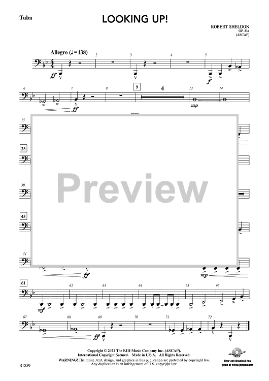 Digital Sheet Music for Looking Up! - Tuba by Robert Sheldon scored for Concert Band; id:508525