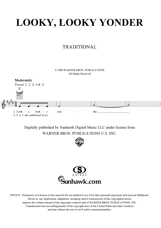 Digital Sheet Music for Looky, Looky Yonder by Traditional scored for Lead Sheet; id:292712