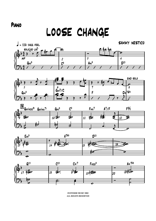 "Loose Change - Piano" Sheet Music by Sammy Nestico