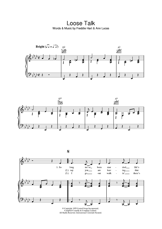 Digital Sheet Music for Loose Talk by Patsy Cline, Freddie Hart, Ann Lucas scored for Piano/Vocal/Chords; id:397691