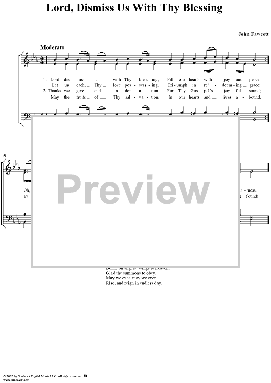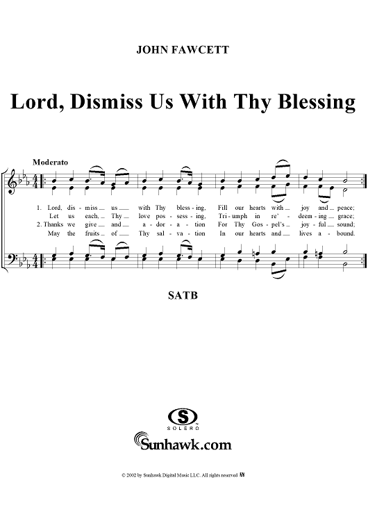 "Lord, Dismiss Us With Thy Blessing" Sheet Music by John Fawcett