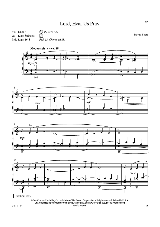 Digital Sheet Music for Lord, Hear Us Pray by , Steven Scott scored for Organ Solo; id:437276