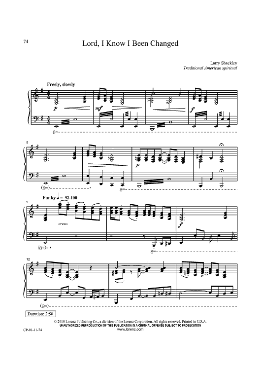 Digital Sheet Music for Lord, I Know I Been Changed by Larry Shackley, Traditional American Spiritual scored for Piano Solo; id:434415