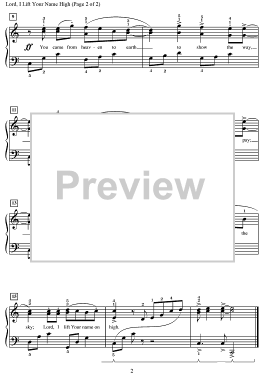 Digital Sheet Music for Lord, I Lift Your Name on High by Rick Founds, Tom Gerou, Victor Labenske scored for Piano/Vocal; id:498009