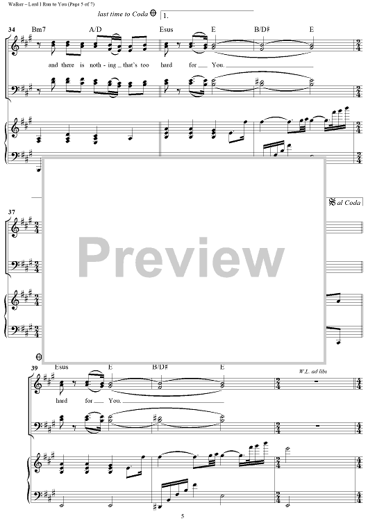 Digital Sheet Music for Lord I Run To You by Tommy Walker scored for Mixed Chorus/Piano; id:308929