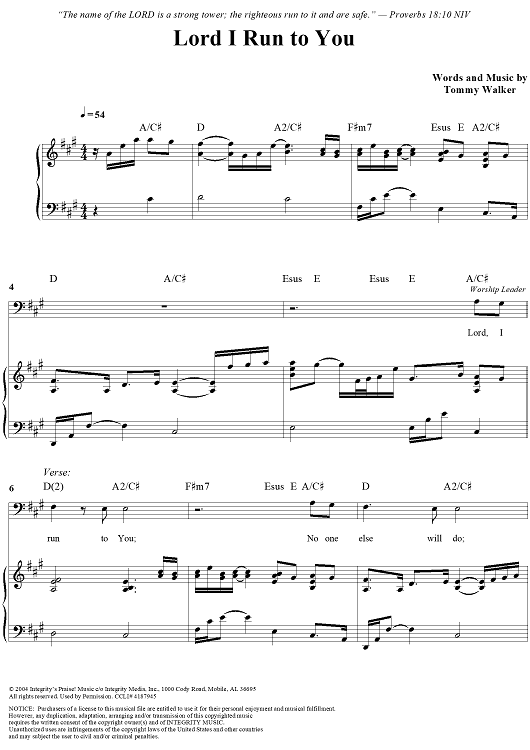 "Lord I Run To You" Sheet Music by Tommy Walker