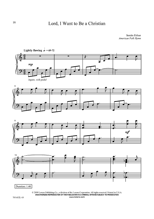 Digital Sheet Music for Lord, I Want to be a Christian by American Folk Hymn, Sandra Eithun scored for Piano Solo; id:434041