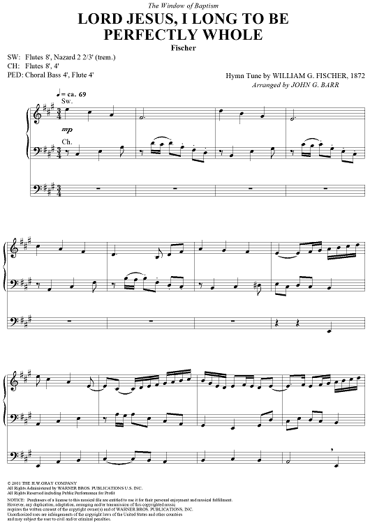 Digital Sheet Music for Lord Jesus, I Long to Be Perfectly Whole by William G. Fischer, John G. Barr scored for Organ Solo; id:292895