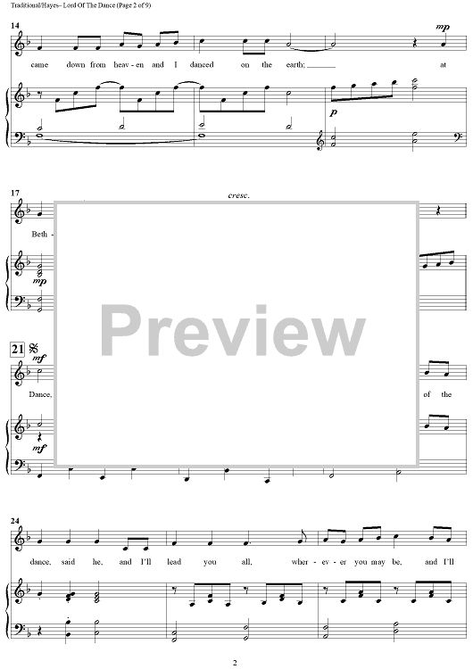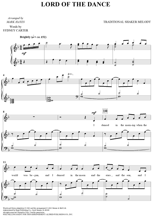 "Lord Of The Dance" Sheet Music by Traditional Shaker Melody