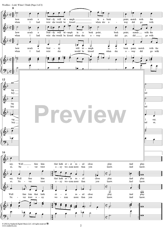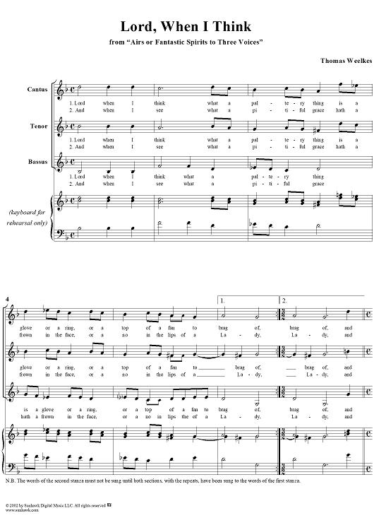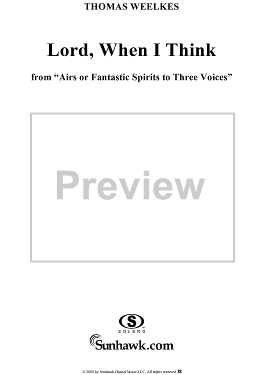 Digital Sheet Music for Lord When I Think by Thomas Weelkes scored for Mixed Chorus; id:262510
