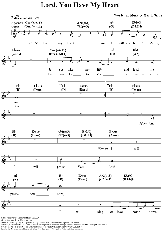 Digital Sheet Music for Lord, You Have My Heart by , Martin Smith, Delirious? scored for Lead Sheet; id:95470