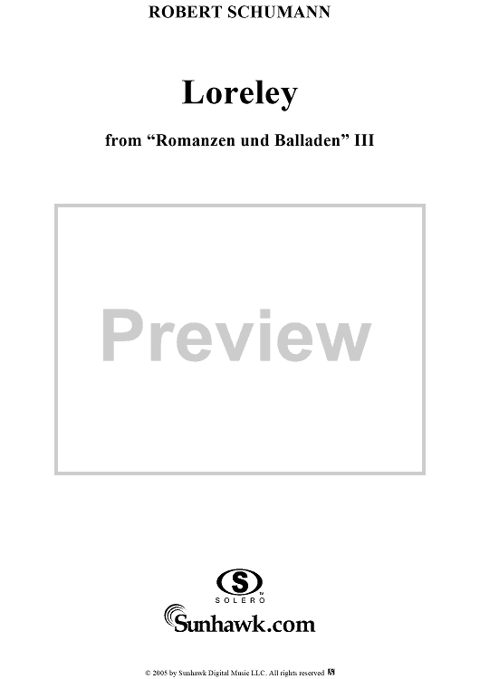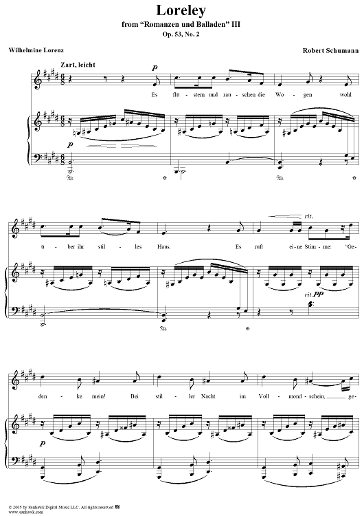 Digital Sheet Music for Loreley, Op. 53, No. 2 by Robert Schumann, Wilhelmine Lorenz scored for Voice/Piano; id:307110