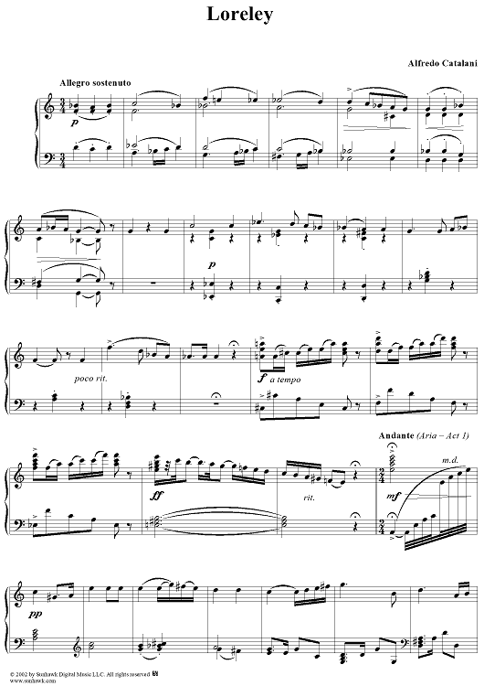 Digital Sheet Music for Loreley by Alfredo Catalani scored for Piano Solo; id:266196
