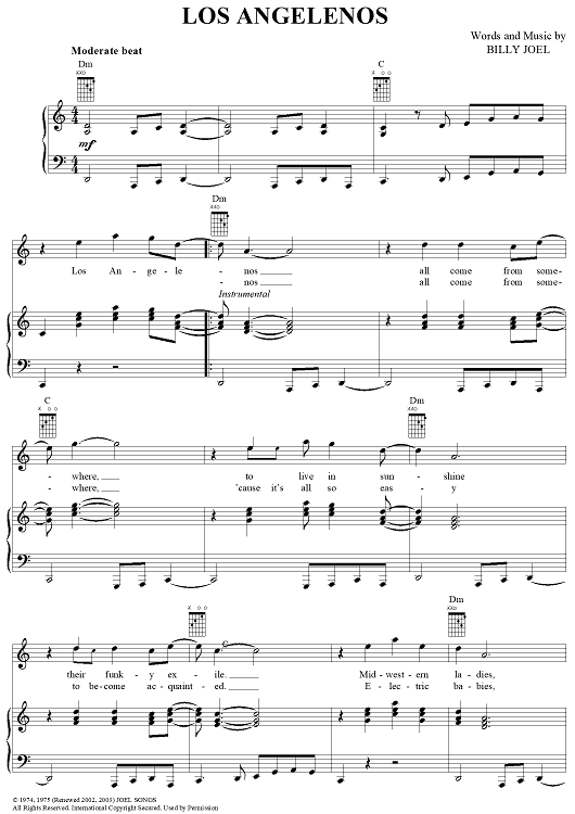 Digital Sheet Music for Los Angelenos by Billy Joel scored for Piano/Vocal/Chords; id:403217