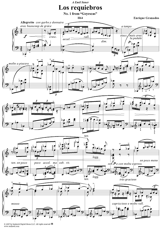 Digital Sheet Music for Los requiebros, No. 1 from "Goyescas", H64 by Enrique Granados scored for Piano Solo; id:296124