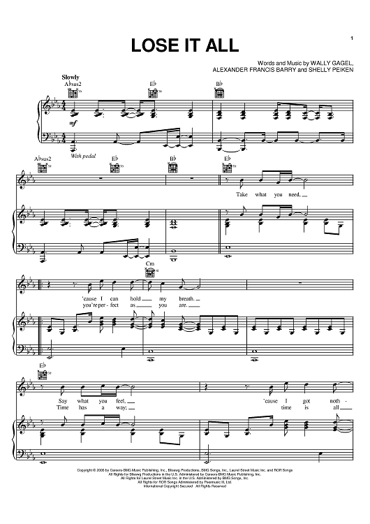 Digital Sheet Music for Lose It All by Shelly Peiken, Backstreet Boys, Xandy Barry, Wally Gagel scored for Piano/Vocal/Chords; id:387105