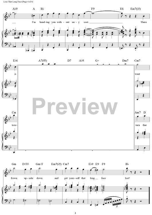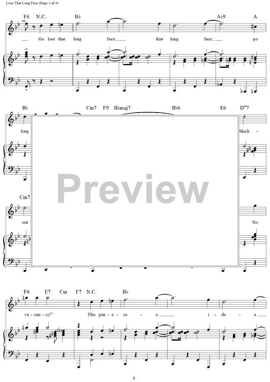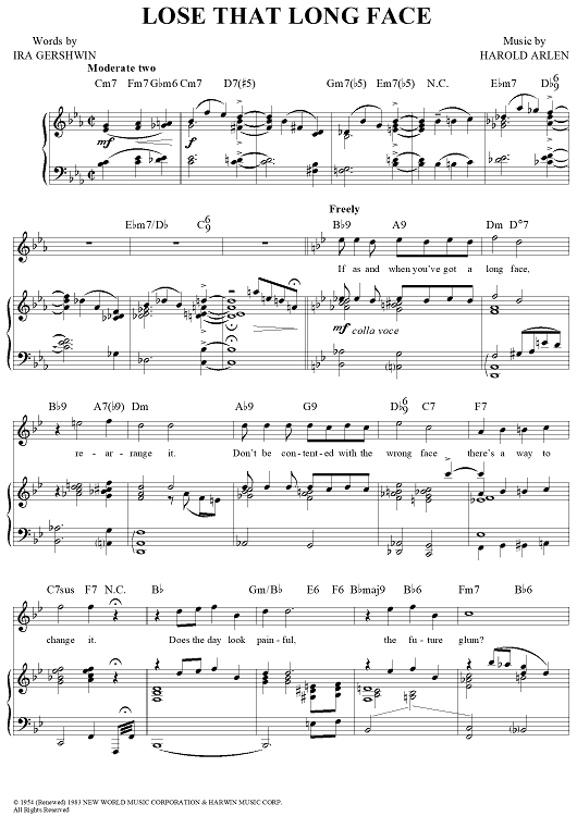 Digital Sheet Music for Lose That Long Face by Harold Arlen, Judy Garland, Ira Gershwin scored for Piano/Vocal/Chords; id:355341