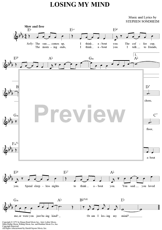 Digital Sheet Music for Losing My Mind by Stephen Sondheim scored for Lead Sheet; id:444345