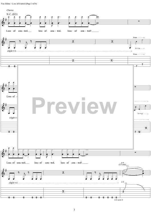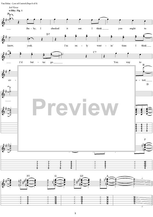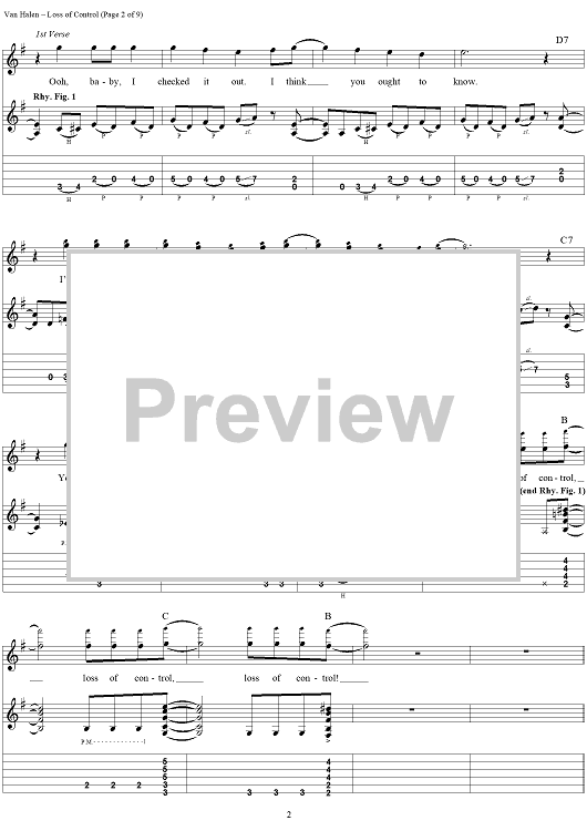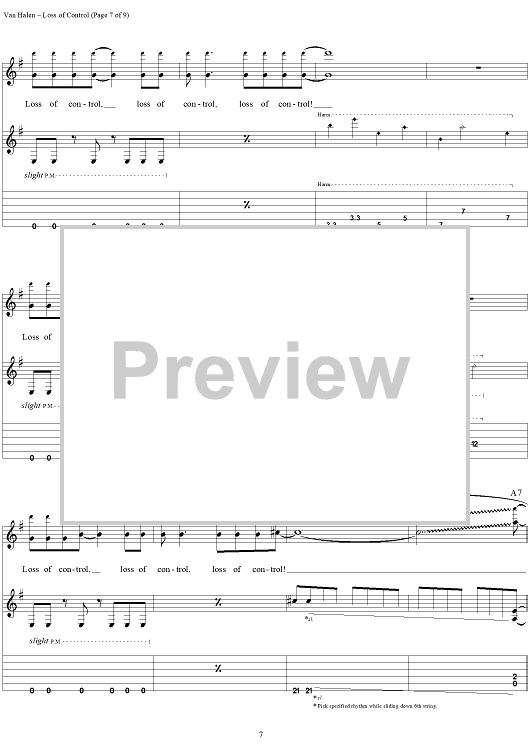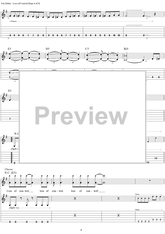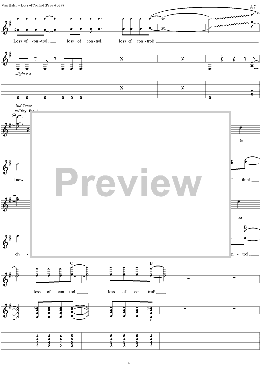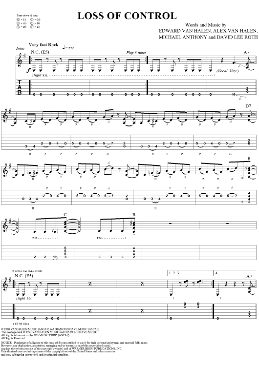 Digital Sheet Music for Loss of Control by Eddie Van Halen, David Lee Roth, Michael Anthony, Alex Van Halen, Van Halen scored for Guitar Tab/Vocal; id:111581