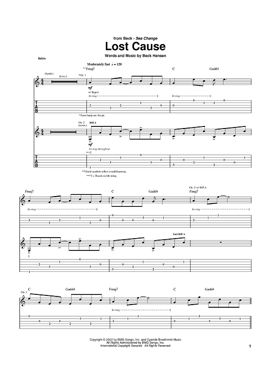 Digital Sheet Music for Lost Cause by Beck scored for Guitar Tab; id:372694