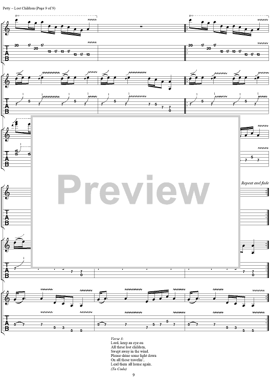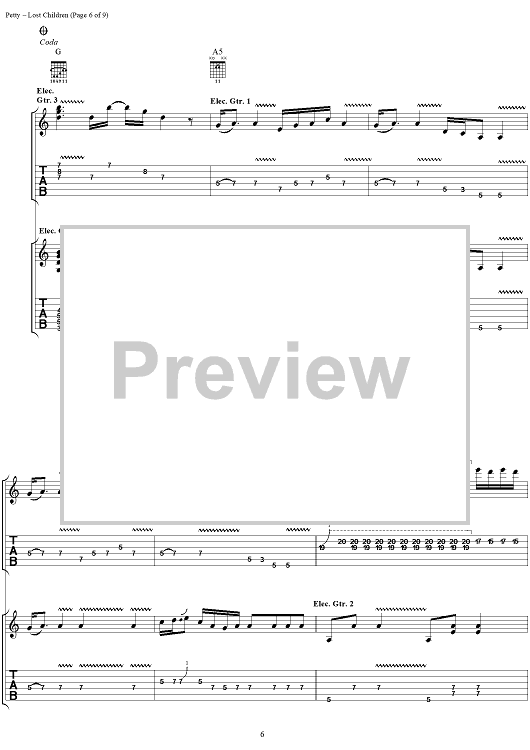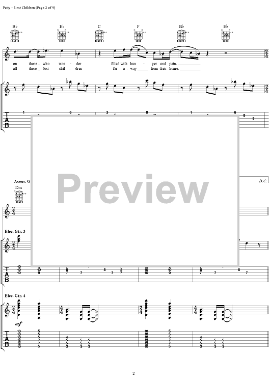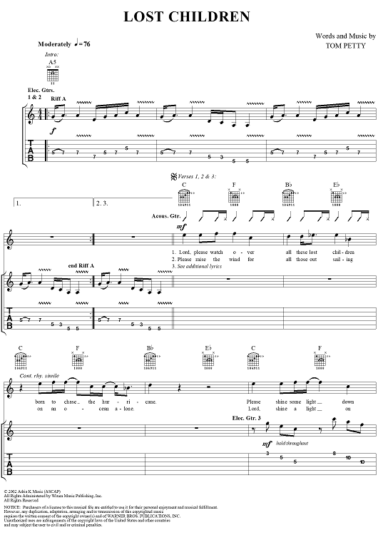 "Lost Children" Sheet Music by Tom Petty and The Heartbreakers