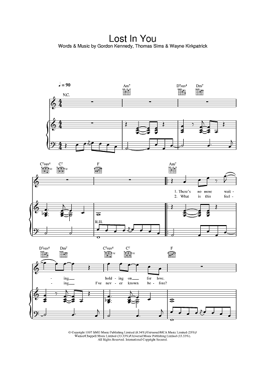 Digital Sheet Music for Lost In You by Westlife scored for Piano/Vocal/Chords; id:378430