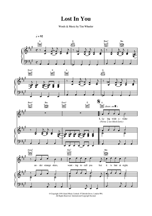Digital Sheet Music for Lost in You by Ash, Tim Wheeler scored for Piano/Vocal/Chords; id:379755