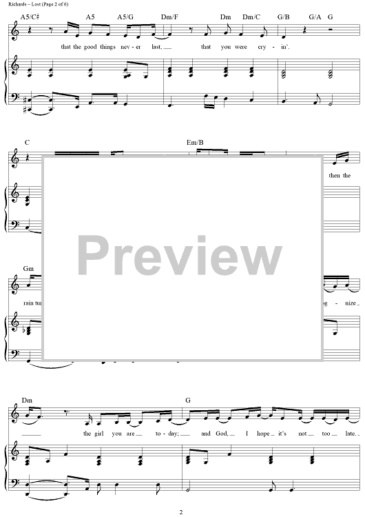 Digital Sheet Music for Lost by Jann Arden Richards, Michael Buble, Alan Chang scored for Piano/Vocal/Chords; id:364568
