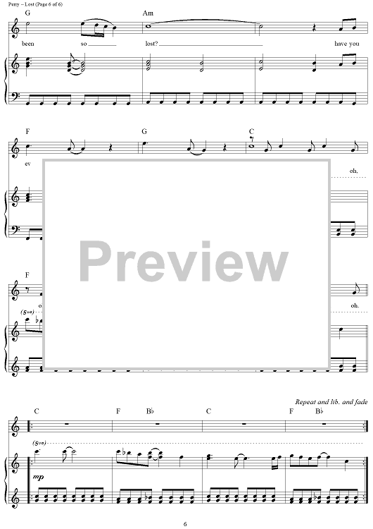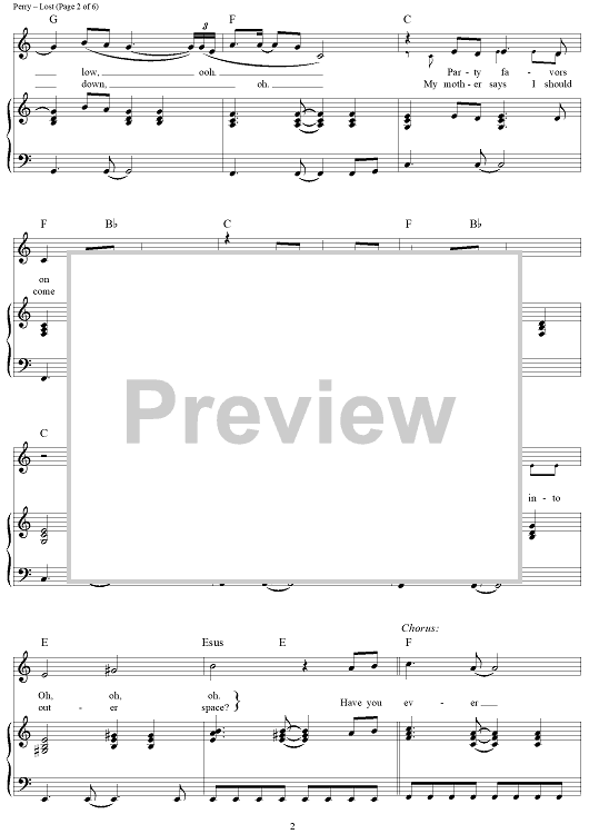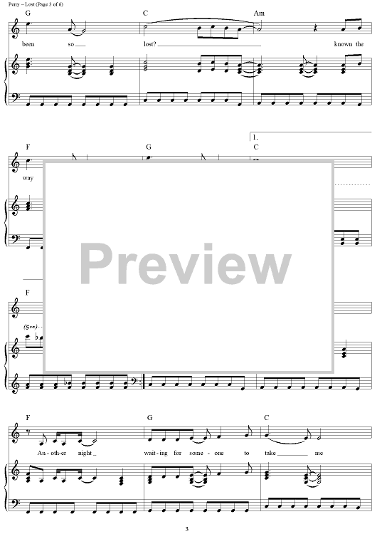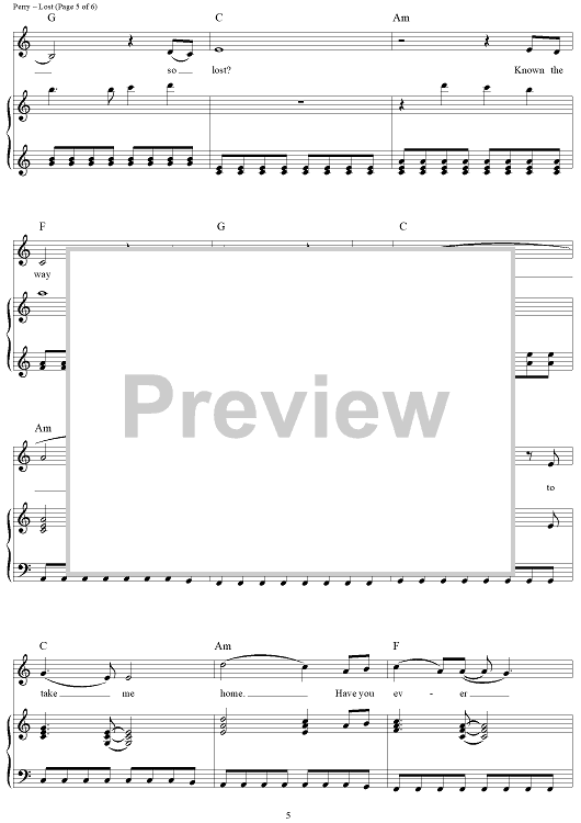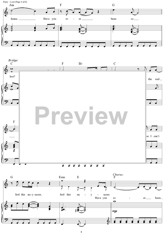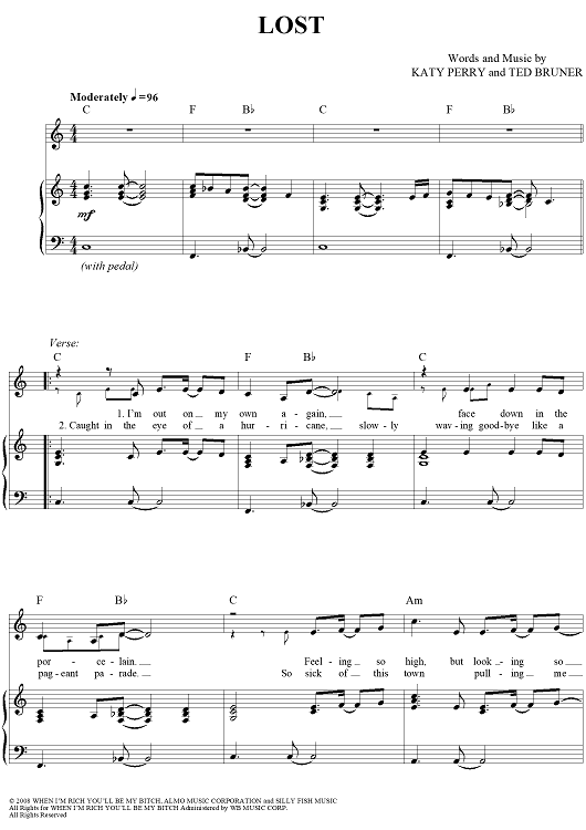 Digital Sheet Music for Lost by Katy Perry, Ted Bruner scored for Piano/Vocal/Chords; id:417458