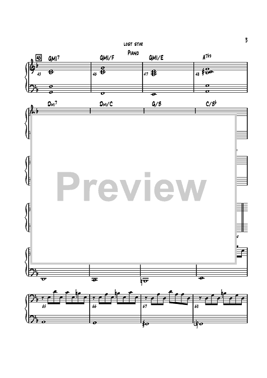 Style: Ballad (Tenor Sax Feature) Rance: F5 Eb5 The first 12 bars of Lost Star asks for a good balance and presence from the rhythm section (preferably electric). We need some real dynamic change at bars 29 and 61, so make it happen! (Nice and full) The last ensemble (bar 61) has some saxophone counter-melody that should be heard strongly.