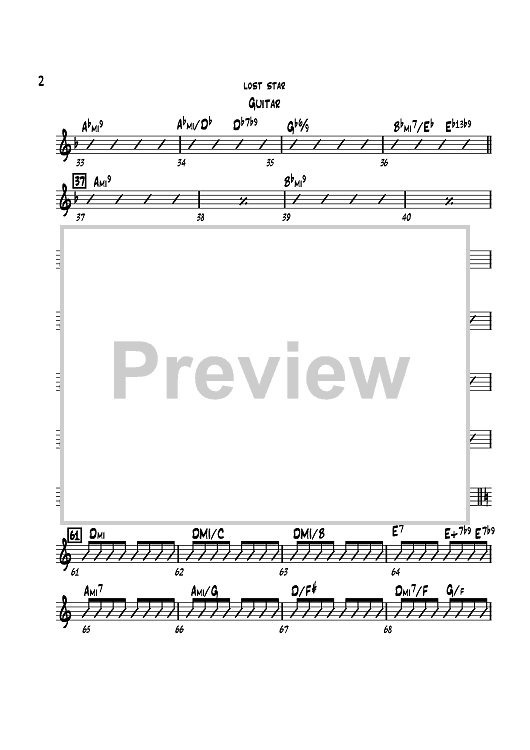 Style: Ballad (Tenor Sax Feature) Rance: F5 Eb5 The first 12 bars of Lost Star asks for a good balance and presence from the rhythm section (preferably electric). We need some real dynamic change at bars 29 and 61, so make it happen! (Nice and full) The last ensemble (bar 61) has some saxophone counter-melody that should be heard strongly.